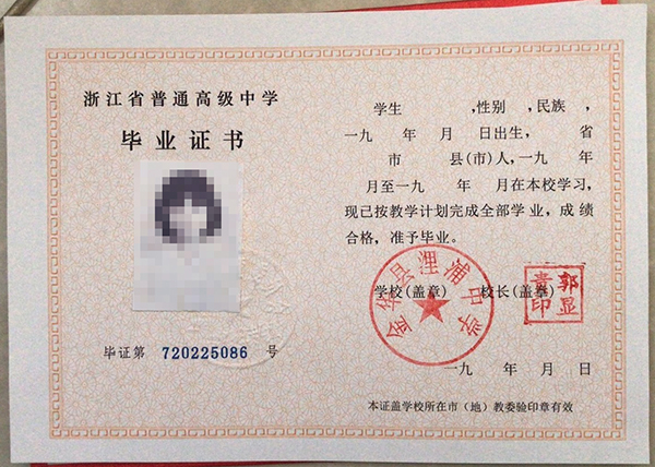 高中畢業證上的照片是不能私自更換的,大家都知道高中畢業證照片上都是蓋有教育行政部門鋼印才能生效(高中畢業證鋼印)。如果自己把高中畢業證照片更換了,照片上沒有了鋼印