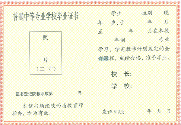 陜西省中專畢業證模板(陜西省中專畢業證空白模板)01-08